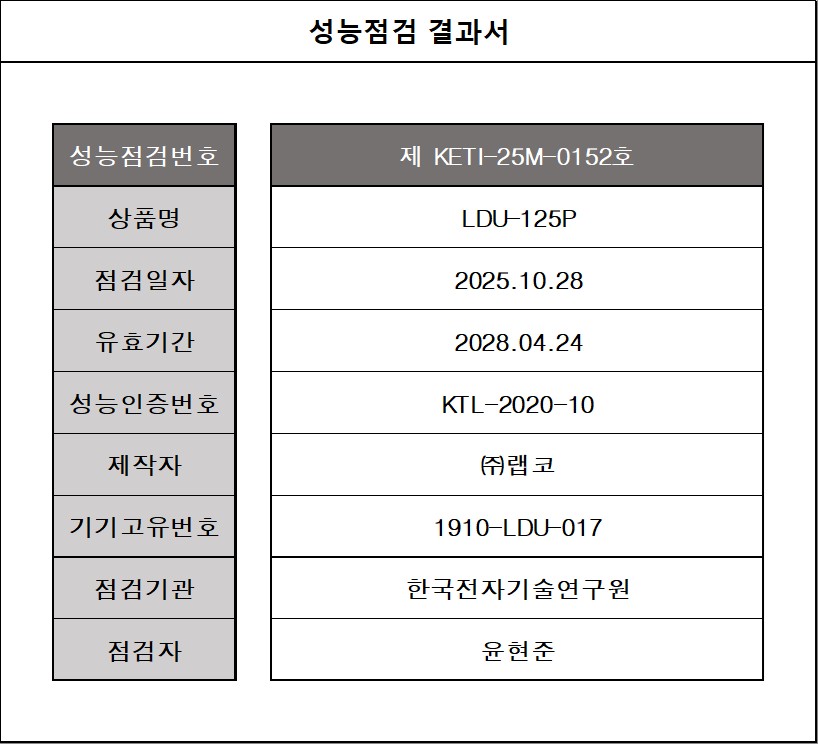 제KETI-25M-0152호(LDU-125P)