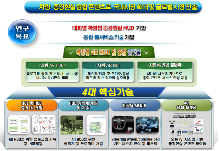 전면 투명유리를 활용한 차량용 대화면 확장형 증강현실 HUD 기술 및 융합 콘텐츠 시범 개발/실증